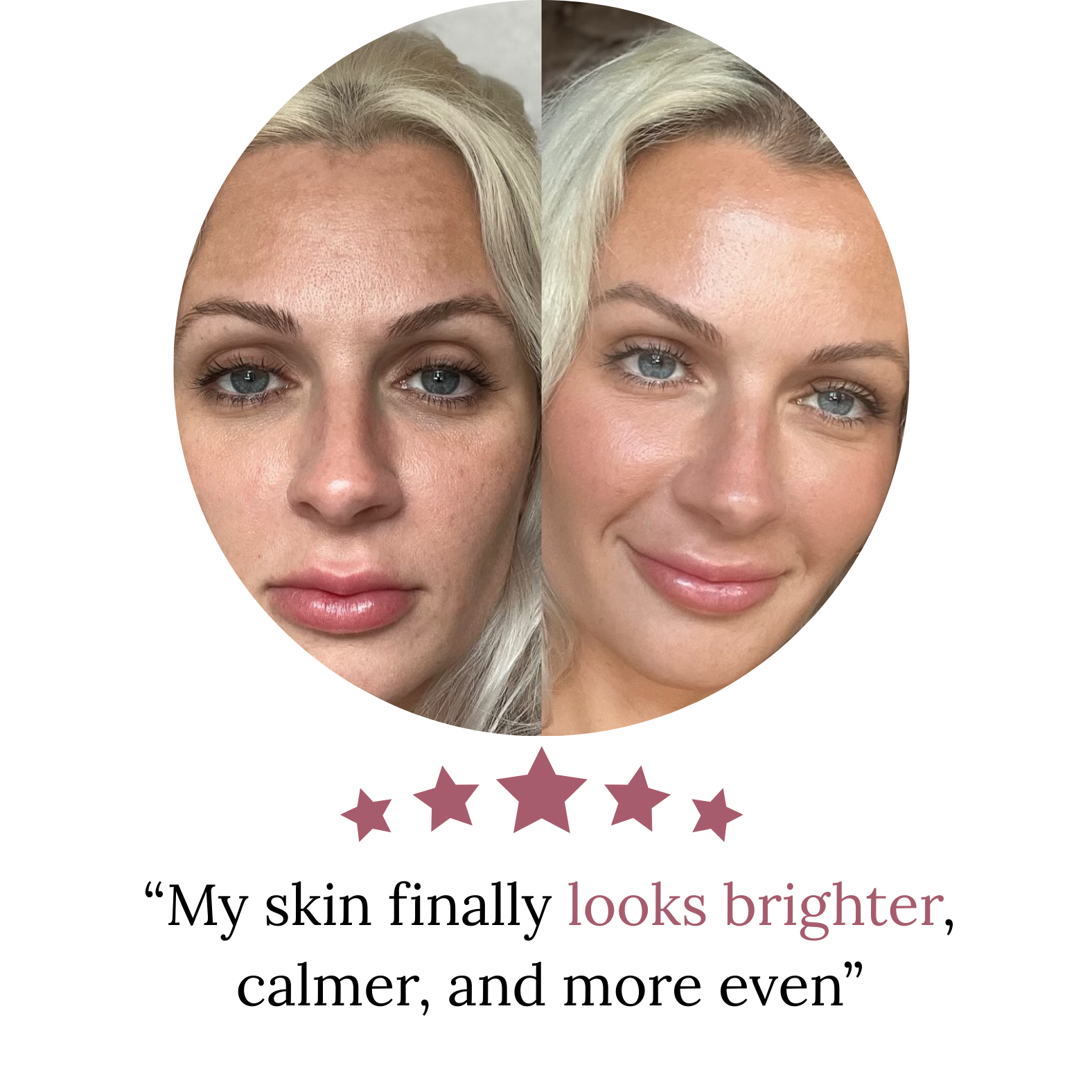 A balanced blend of turmeric, kojic acid, vitamin C, and licorice root, formulated to support brighter, more even-looking skin.